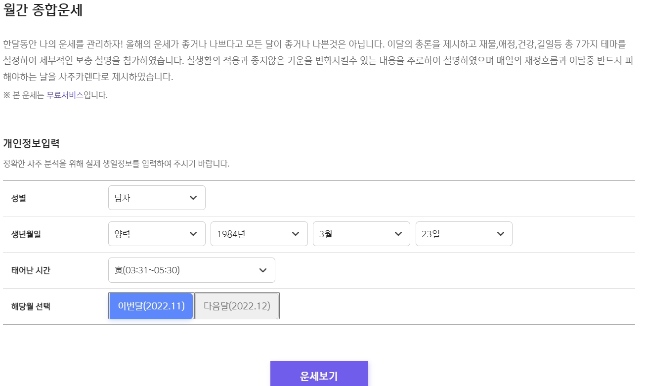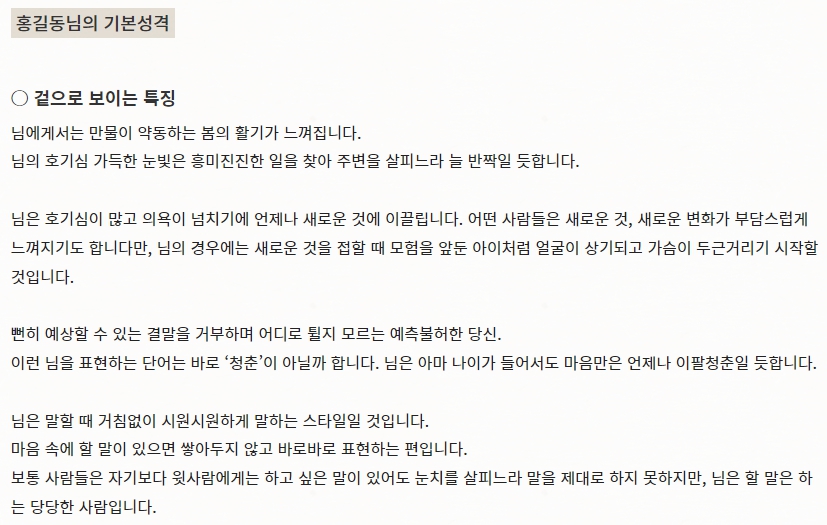 다. (사주인) 운세는 유료지만 '타고난 성격'은 무료