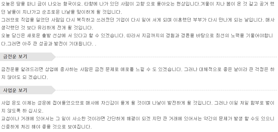 그래서 이번에는 오늘의 운세 및 주간 운세 등 다양한 종류의 운세를 공짜로 볼 수 있는