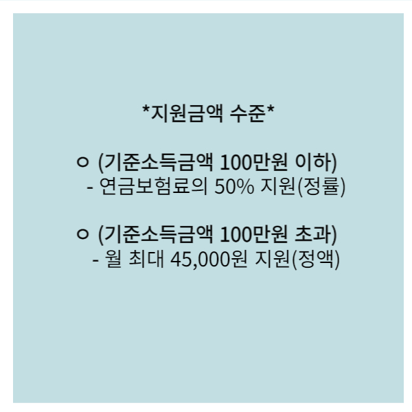 ㅇ 지원금액: 연금보험료의 50%까지, 월 최대 45,000원 지원