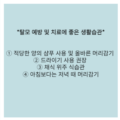 탈모를 예방하고 두피 건강을 유지하시기를 추천드립니다.