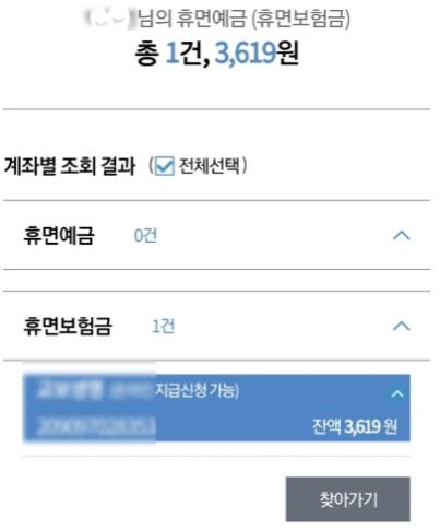 조회 결과, 큰 금액은 아니지만 제게도 숨어있는 휴면보험금이 있었습니다.