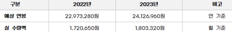 ■ 2023년 최저임금 확정 금액에 따른 예상 연봉