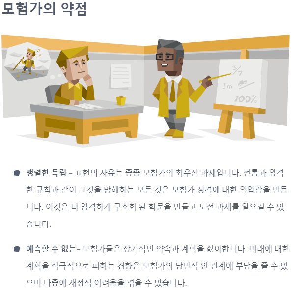 이 홈페이지에서는 유형별 성격의 강점과 약점도 제공해 줍니다.